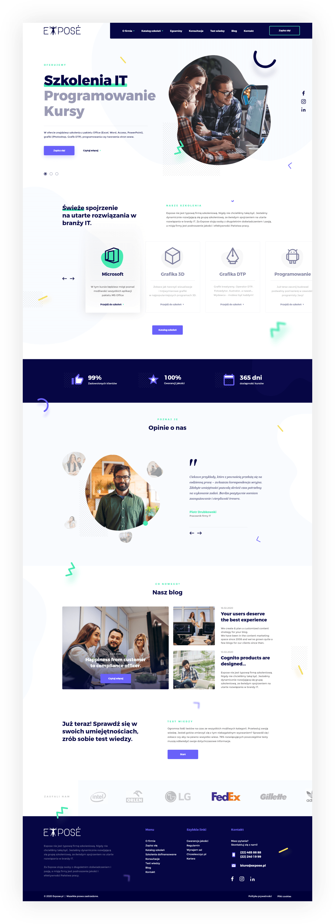 Exposé is a training group with over 10 years of experience, carrying out courses in the IT industry throughout Poland. The wide offer includes training in the field of Microsoft, Boot Camp, 3D graphics, programming, graphics and DTP, SQL and databases, as well as courses for web developers.