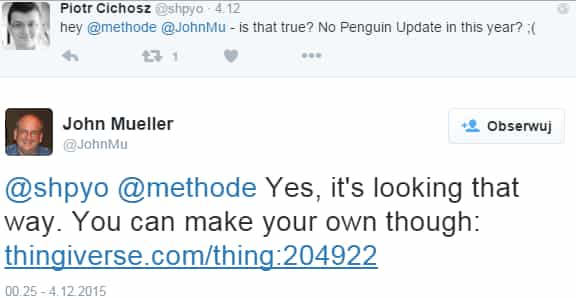 Pierwsze oznaki o tym, że może być inaczej pojawiły się na początku listopada, kiedy to Gary Illyes za pomocą Twittera zakomunikował, że nieprzygotowany w pełni algorytm Pingwin nie ujrzy światła dziennego.