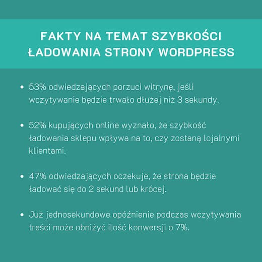 Jak widać, szybkość ładowania strony ma wpływ na wiele czynników, m.in. na pozycję witryny w Google, a także na jej odbiór przez użytkowników, czyli UX czy też zyski dla firmy. Jeśli więc dostrzeżesz, że Twoja strona www zaczyna działać coraz wolniej, koniecznie zadbaj o jej optymalizację. Użytkownicy Internetu mają bowiem dość wysokie oczekiwania co do prędkości ładowania strony. Niemal 50% z nich deklaruje, że opuści witrynę, gdy ta będzie ładowała się dłużej niż 2 sekundy. To duże wyzwanie, ale zdecydowanie do przeskoczenia! Jeśli tylko przyspieszysz swoją stronę WordPress.