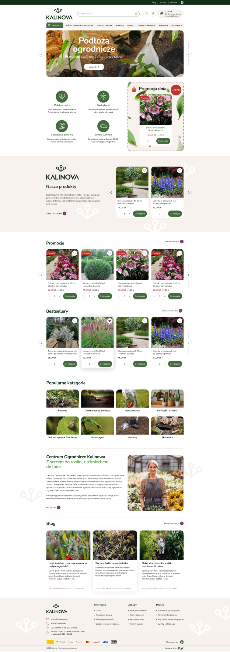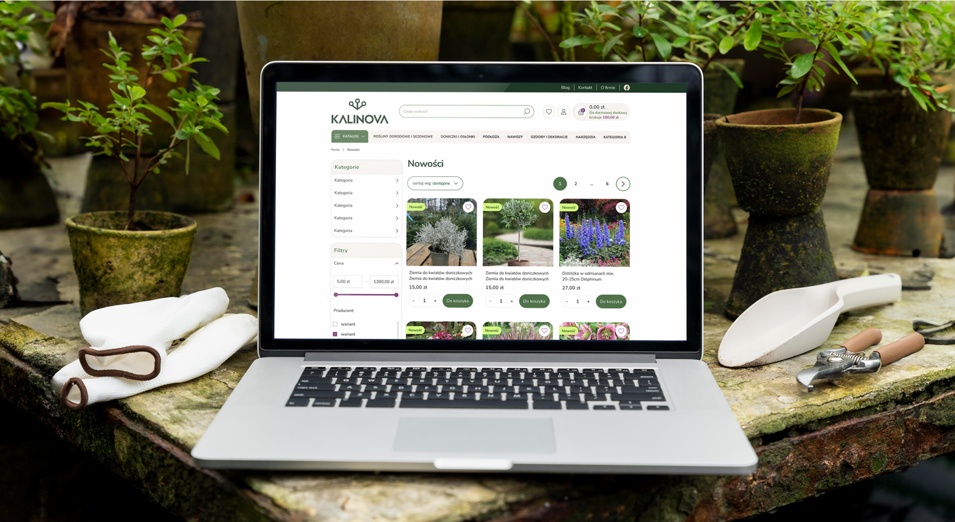Projekt realizacji sklepu internetowego Kalinova.pl to kompleksowe wdrożenie platformy e-commerce, dedykowanej pasjonatom ogrodnictwa. Naszym celem było stworzenie intuicyjnego i estetycznego sklepu, który ułatwia klientom zakup wysokiej jakości akcesoriów ogrodniczych oraz roślin.