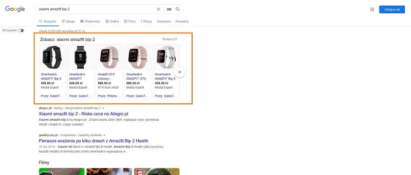 Jest to najnowsza usługa w systemie Google Ads polegająca na wyświetlaniu w formie graficznej reklam produktów z Twojego sklepu internetowego. Po wpisaniu nazwy danego produktu w wyszukiwarce Google, oprócz linków sponsorowanych i naturalnych wyników wyszukiwania, użytkownicy otrzymują w wynikach również zdjęcia produktu z ceną, adresem sklepu i linkiem kierującym bezpośrednio do danego produktu. Jest to najbardziej efektywna metoda promowania sklepów internetowych w wyszukiwarce Google.