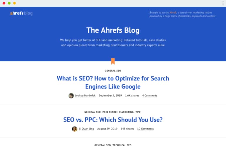 Ostatnim, ale nie najgorszym blogiem jest blog Ahrefs. Na samym początku warto wspomnieć, że Ahrefs to jedno z najbardziej znanych narzędzi SEO, które pomaga w optymalizacji, badaniu konkurencji i nie tylko. Z całą pewnością korzystają z niego miliony webmasterów na całym świecie. Na blogu z kolei znajdziesz dawkę wartościowych informacji od ekspertów z branży, wskazówki z zakresu SEO, samouczki czy filmy instruktażowe, dzięki którym możesz być zawsze na bieżąco. Oprócz tych tematów dostępne są tu także informacje dotyczące wielu innych dziedzin marketingu internetowego.