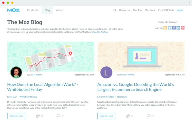 Moz to blog, który jest obecny w sieci od 2004 roku. To jedna z najbardziej zaufanych witryn, jeśli chodzi o informacje na temat SEO, dlatego nieprzypadkowo znalazła się na pierwszym miejscu. Zarówno początkujący, jak i doświadczeni webmasterzy znajdą tu wiele ciekawostek i nowinek dotyczących pozycjonowania stron, które poszerzą ich umiejętności. Na blogu Moz dostępne są artykuły wielu specjalistów z branży, którzy uważani są za guru od SEO. Możesz więc mieć pewność, że przedstawione treści niosą za sobą bardzo wysoką jakość merytoryczną. Teksty pojawiają się tu średnio co 2-3 dni. Zaglądając na bloga Moz regularnie możesz mieć pewność, że nie przegapisz żadnej nowinki. Moz to także szereg darmowych i płatnych narzędzi oraz poradników SEO. Dla początkujących przydatny okaże się na pewno słynny „The Beginner’s Guide to SEO”.