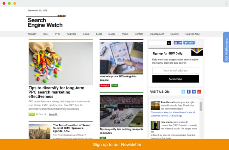 Search Engine Watch to portal stworzony przez wspomnianego wcześniej Danny’ego Sullivana w 1996 roku, czyli ponad 20 lat temu. To najprawdopodobniej najstarszy blog na tej liście! Dostarcza on najświeższych informacji dotyczących marketingu internetowego. Dzieli się na kilka różnych kategorii, w tym m.in. SEO, PPC, Analytics, Local, Mobile, Video, Content, Social czy Development. Można tu więc odnaleźć wartościowe treści od ekspertów z różnych dziedzin marketingu w sieci z całego świata. Ogromną zaletą tego portalu jest fakt, że wszystkie informacje podane są w naprawdę prosty i przystępny sposób. To blog, który pomoże Ci być zawsze na bieżąco w szybko zmieniającym się świecie SEO.